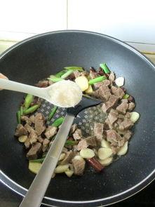 2. 热锅凉油:在锅中倒入适量的油,油热后放入腌制好的牛肉片,快速翻炒至变色,捞出备用。